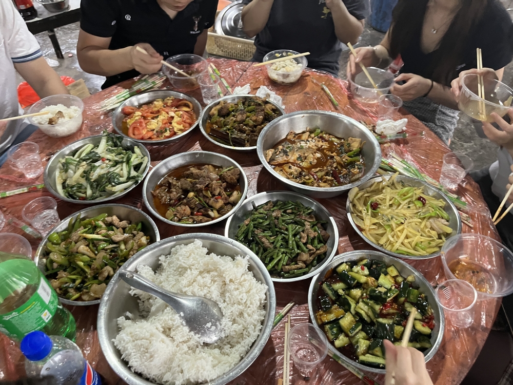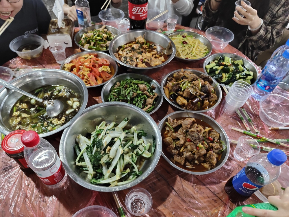 啤酒鴨、酸菜魚、土豆燜雞、四季豆炒肉、拍黃瓜、酸辣土豆絲……菜品非常豐富而且色香味俱全,讓人恨不得馬上吃到胃里去