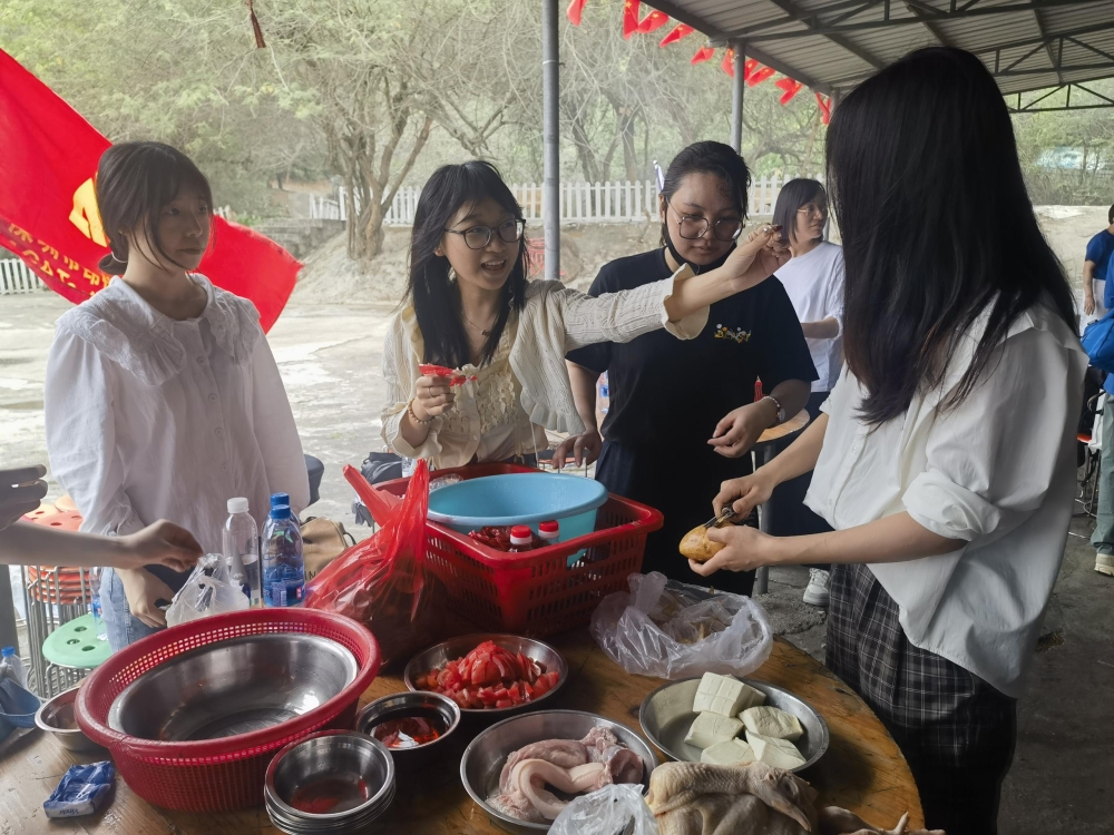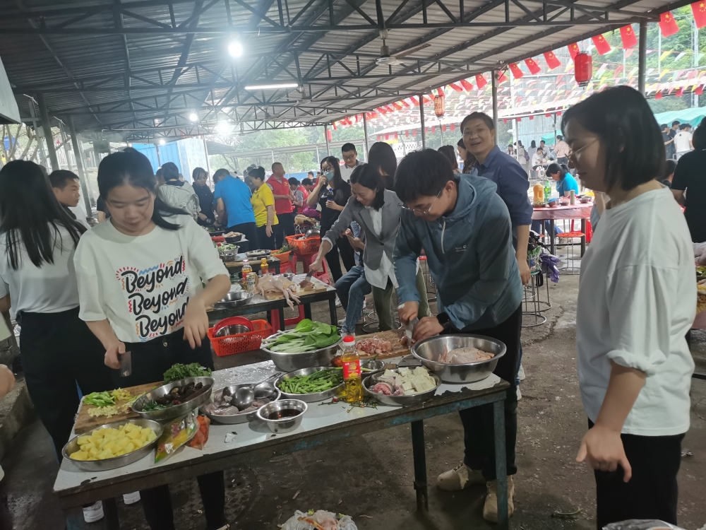 每個人都分到了各自的任務(wù),洗菜的洗菜,切菜的切菜,忙得不亦說乎
